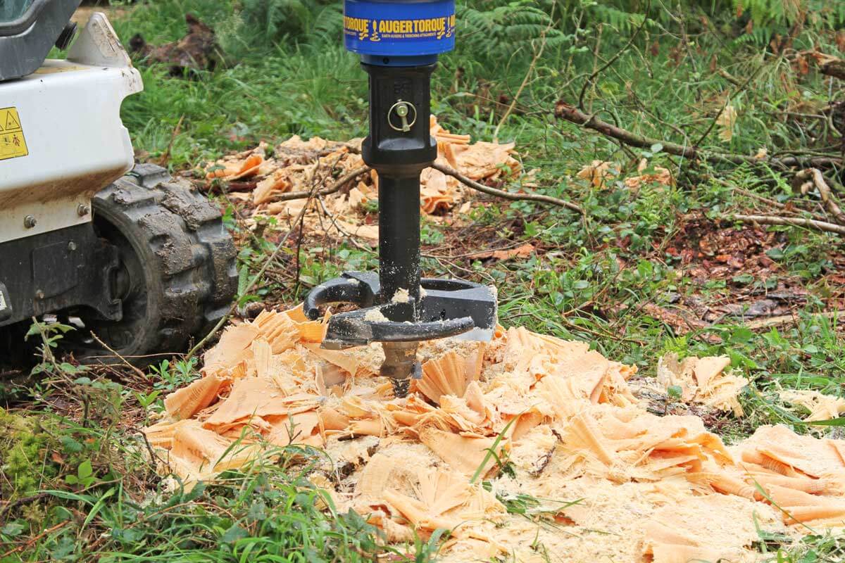 Removal of tree stumps is a job which, at best, is noisy, messy and time consuming. Traditional methods of removal, shower chippings over a wide area, making clean up a time-consuming exercise. The Auger Torque Stump Planer is the quick and easy additional attachment to any earth drill for the effective, easy and clean removal of tree stumps of any size and a must-have product for those working in ground preparation and woodland maintenance.